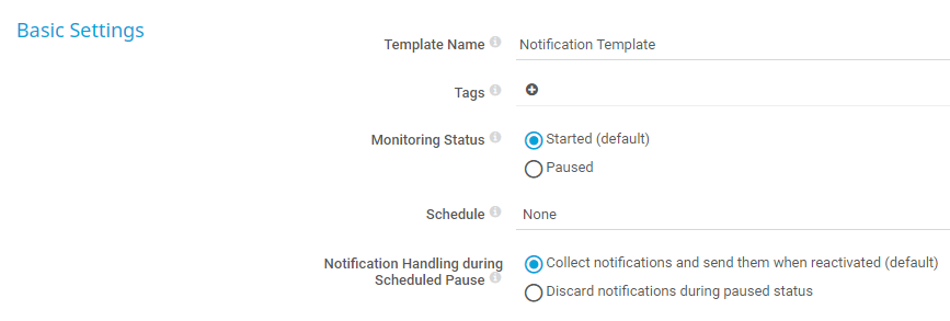 Started (default): PRTG executes the notifications that are defined in the notification template whenever it is triggered.