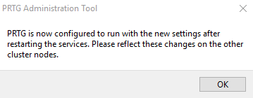 i_round_redSettings that you define are only valid for the PRTG core server system on which you start the PRTG Administration Tool. Make sure that you log in to the system that you want to make changes to and open the PRTG Administration Tool there.