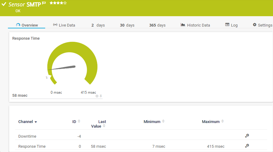 The SMTP sensor monitors a mail server using the Simple Mail Transfer Protocol (SMTP).