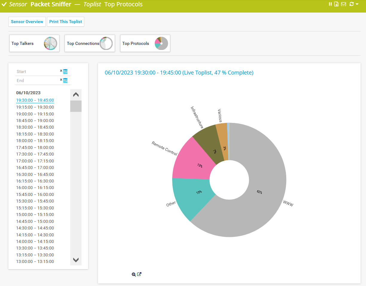 Toplist Top Protocols for a Packet Sniffer Sensor